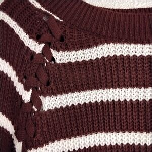 Burgundy & White Striped Stitch Tunic Sweater Size XL