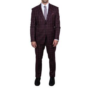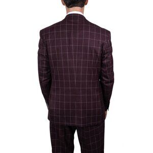 Burgundy Windowpane 3 piece Stacy Adams Men's suit