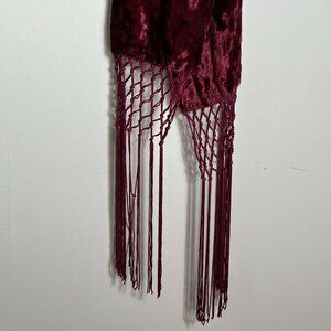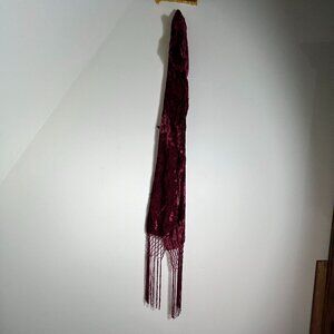 Burgundy Wine Crushed Velvet Scarf with Macrame Fringe, 84" x 5.5" approximately
