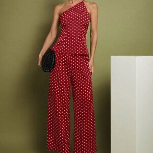 Burgundy Women's Polka Dot Print Sleeveless Top And Wide Leg Pants Set