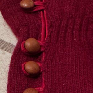 Soft Wool Gloves with Red leather trim and a neutral leather color botton accents