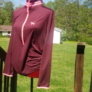 Burgundy 3/4 zip jacket with hot pink trim. PINK Ultimate line. Fits very snug