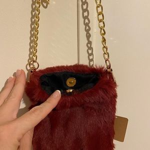 Burgundy gold chain snap purse. This would be a cute New Year’s Eve bag