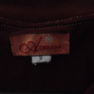 Deep burgundy zip up with light pink stitching. Has gemstones and sequin embellishment!