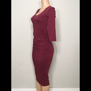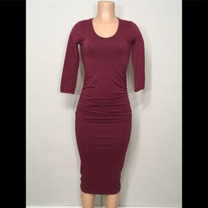 Burgundy ruched midi dress. NWOT