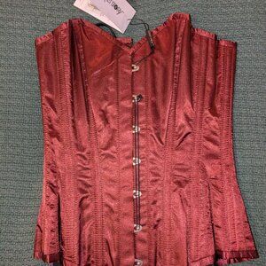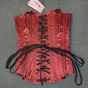 Burgundy satin longline waist-taming overbust corset