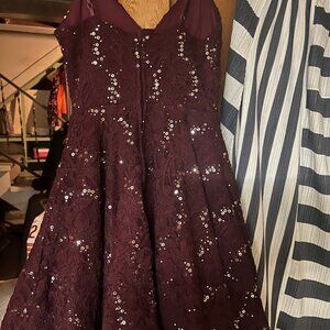 Elevate your formal wardrobe with this stunning burgundy sequins mini dress, perfect for making a sophisticated statement. This dress features delicate shoulder straps that provide support while enhancing the elegant silhouette. The rich burgundy color is complemented by intricate sequins detailing that adds a delightful sparkle and a touch of glamour to your ensemble.