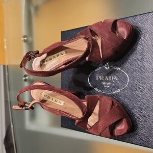 Burgundy suede Prada heels. EUC.