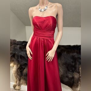 Burgundy Elegant Strapless Soft Satin Maxi Dress