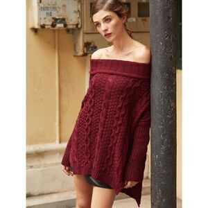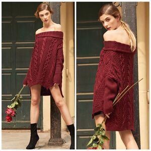 ✨Burgundy Knit Off The Shoulder High Low Sweater✨