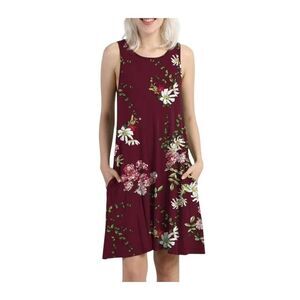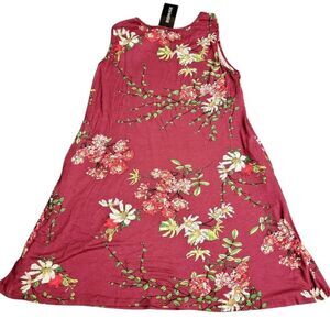 Burgundy NEW! Beach Casual Sleeveless Stretchy Soft Comfy Floral Print Tank Loose Sundress Pockets sz XL BRAND NEW WITH TAGS!