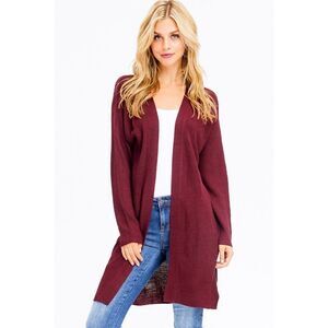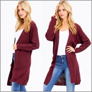 Burgundy Ribbed Open Front Duster Cardigan- Small