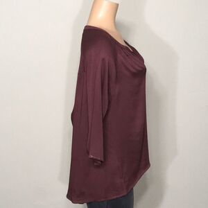 Burgundy Romy Rayon High/Low Cross-Back Top. New