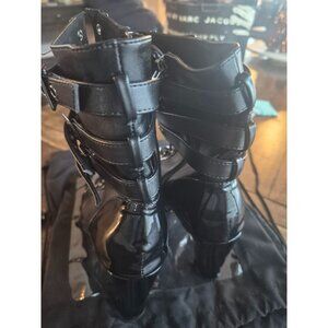 Burju Black Patent Leather Dance Ankle Boots US 11/EUR 44