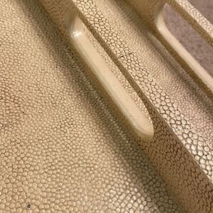 Available in three rich understated colors, our faux shagreen Emery trays increase the chic of any surface.