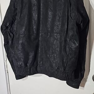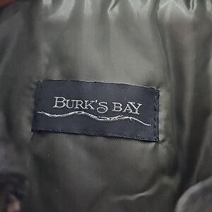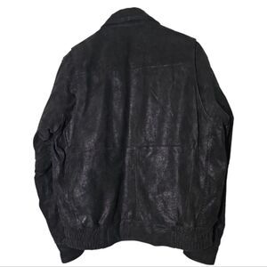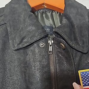 Burks Bay Black Leather Bomber Jacket with American Flag Patch Size Large