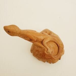 Burl Wood Lizard Carving Realistic Hand Carved Folk Art