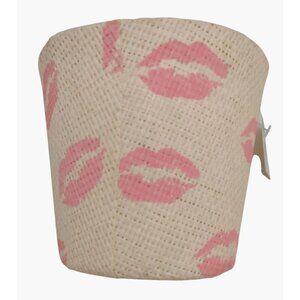 Burlap Basket Lined Plant Holder Pink Lipstick Marks Kisses Valentine 4 Inch