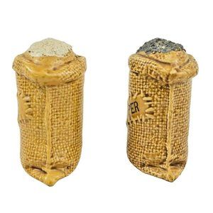 Burlap Sack Salt and Pepper Ceramic Shaker Set 3.75 inch Our Own Imports Vintage