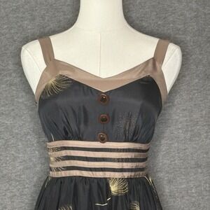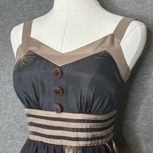 Burlapp Anthropologie Silk Dandelion Wish Black Brown Dress Womens Size 0