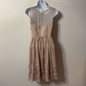 Cream silk chiffon dress from Burlapp. Side zip and tie back waist. Size 2.