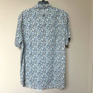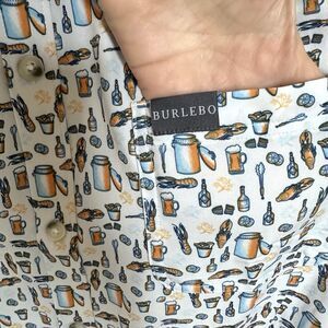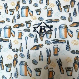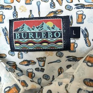 Burlebo Shirt Mens Lg Button Down White Crawfish Boil Beer Short Sleeve NWOT