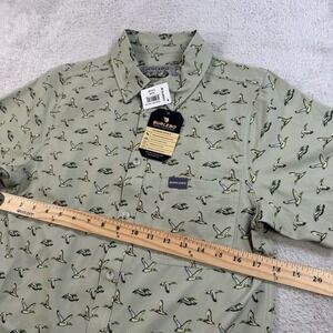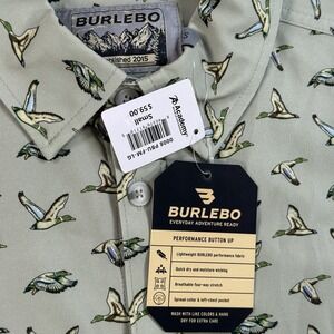 Burlebo Shirt Mens Small Green Performance Short Sleeve Button Up Geometric Duck