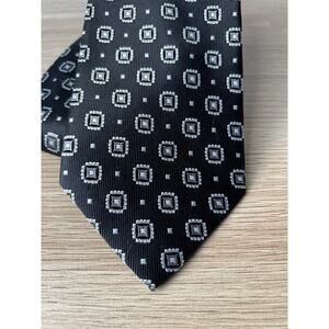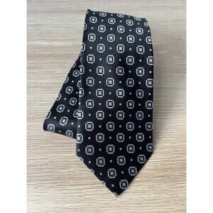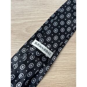Burma Bibas Black with White and Gray Geometric Designer 100% Silk Tie