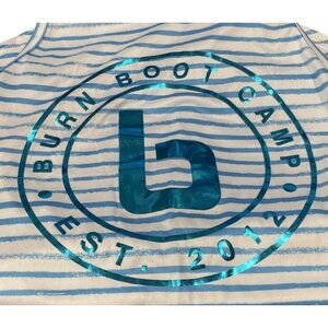 Burn Boot Camp Athletic Tank Top Womens S Blue White Stripe Logo Sleeveless New