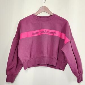 Burn Boot Camp Pullover Crew Neck Crop Sweatshirt Womens XS Pink Cotton Casual