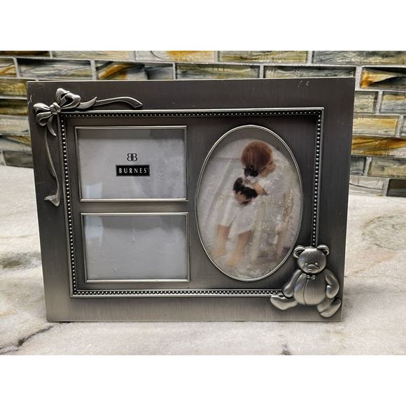 Burnes BABY Picture Photo Frame Vintage 3 Frames 3" 4.5" Bow Teddy Bear Swans