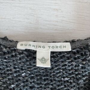 Burning Torch Anthropologie Gray Open Knit Hooded Sweater Size XS Boho Hippie. Burning Torch women's sweater. Open knit. Long sleeve. Hooded. Gray. Side slits on hem. Size XS. Measured laying flat: measures 17.25" from armpit to armpit. Measures 30.5" from mid tag to end of sleeve. Measures 23.5" long from top of tag to front hem and 25.5" to back hem. Boho, hippie, indie, festival, casual.