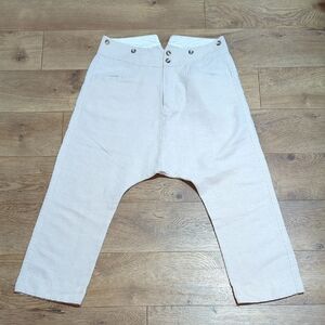 Burning Torch Drop Crotch Cotton Linen Trouser in Oatmeal Beige S