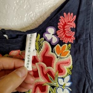 Burning Torch Embroidered Sleeveless Top Sz L