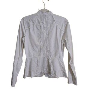 Burning Torch Recycled Cotton White Long Sleeve Raw Hem Full Zip Jacket Size S