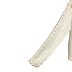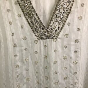 Burning Torch Women Tunic Top Boho White Floral Gems Long Sleeve V-Neck S $395