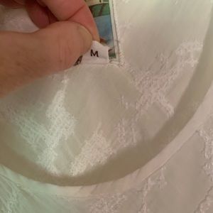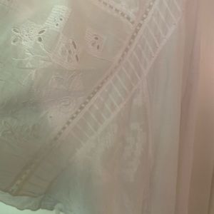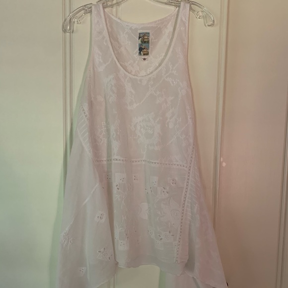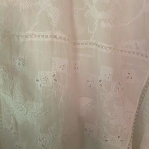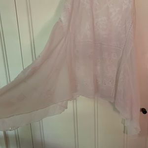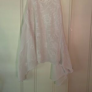 Light weight sheer cotton tunic, handkerchief hem. Embroidered I wore as a dress over a slip, with jean cutoffs or swimsuit coverup! Great condition. Medium wear.