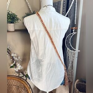 Burning Torch Bohemian White Button Down Sleeveless Oversized Pocket Blouse