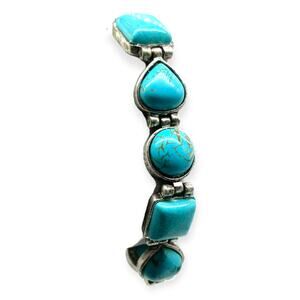 Burnished Silver Bracelet Turquoise Multi Shaped Semi Precious Stone Howlite