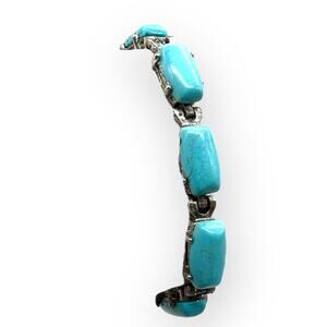 Burnished Silver Bracelet Turquoise Rectangular Semi Precious Stone Howlite