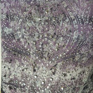 Lightweight burnout style t-shirt with rhinestone design. This shirt can easily be worn under a cardigan or blazer for work or worn with jeans on the weekend.