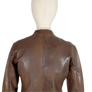 Gently pre-loved Burns Embossed Leather Jacket Size Small in Brown.