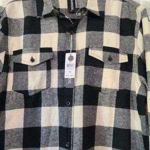 Burnside B8210 Yarn-Dyed Long Sleeve Flannel Mens Medium Black White NWT