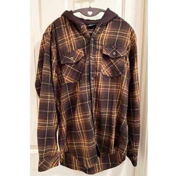 Burnside Brown Plaid Hooded Flannel Shirt – Men’s Medium