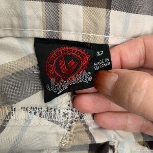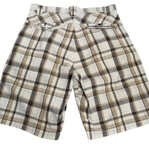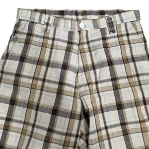Burnside Flat Front Chino Shorts 32 Beige Plaid 5 Pocket Button Zip Belt Loops