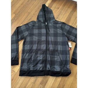 Burnside Jacket Hoodie Men's Houndstooth Black Plaid Tech Fleece 1/4 Zip Size XL