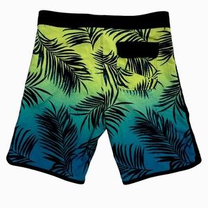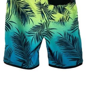 Burnside Men's Board Shorts Cyan Blue Surf Swim Casual Tropical Print Polyester Blend Shorts Size 33