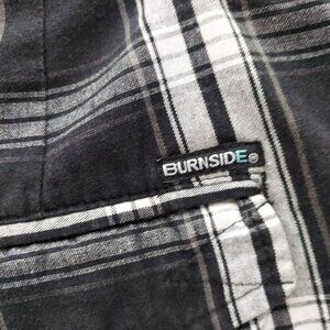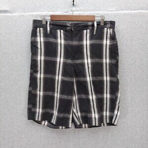 Burnside Mens Flat Front Plaid & Check Shorts Size 32 Black Skate Surf