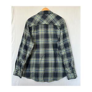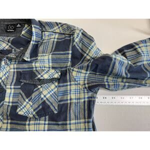 Burnside Plaid Flannel Shirt Mens Size XL Pockets Button Up Navy Blue Olive Green