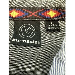 Men's Burnside long sleeve button down shirt, spread collar, size large. Small stain near front pocket, no holes, rips or tears. Pre-owned. Measurements in photos. Smoke free home.